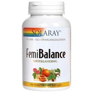 Solaray FemiBalance til kvinder før og i overgangsalderen.Solaray Femibalance er vegetabilske kapsler som letter overgangsalderen for kvinder. Rødkløver og yamsrod bidrager til at lindre gener relateret til overgangsalderen bl.a. hedeture. Salvie bidrager (Læs mere)